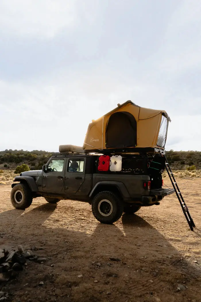 Vylepšený autostan GEO 2.5 Pro s časem rozložení 60 sekund nabízí až o 36 % více prostoru. Pohodlná 5 cm matrace, port pro připojení topení nebo klimatizace, zadní přístřešek, ochranný obal na stan. Hnědá barva.