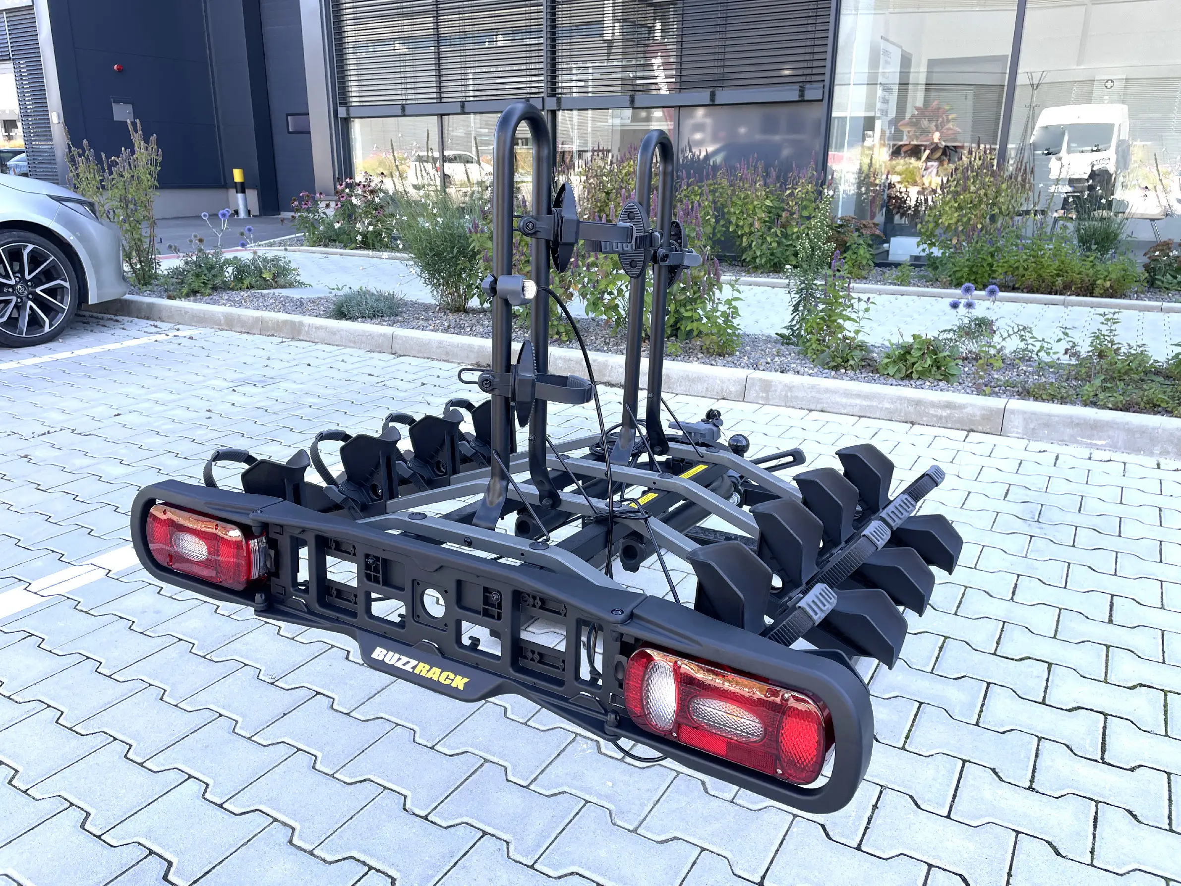 Dobře navržený nosič kol BuzzRacer 4 značky Buzz Rack je určen pro přepravu 4 kol. Základní ale velmi spolehlivý nosič kol na tažné zařízení, vybavený plnou světelnou rampou s 5-ti světly a 13 PIN zásuvkou. Konstrukčně BuzzRacer 4 vychází z modelů Eazzy a Quatro. Kolébky na kola jsou mohutnější pro lepší stabilitu při převozu jízdních kol.