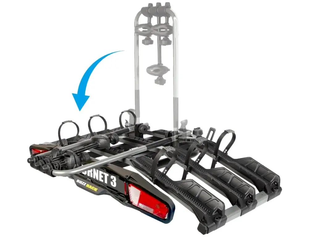 Velmi dobře navržený, jednoduchý a pevný cyklonosič E-Hornet 3 pro těžká elektrokola. Široké podpěry kol umožňují namontovat většinu běžných rozměrů jízdních kol a pneumatik. Určený k přepravě 3 jízdních kol.