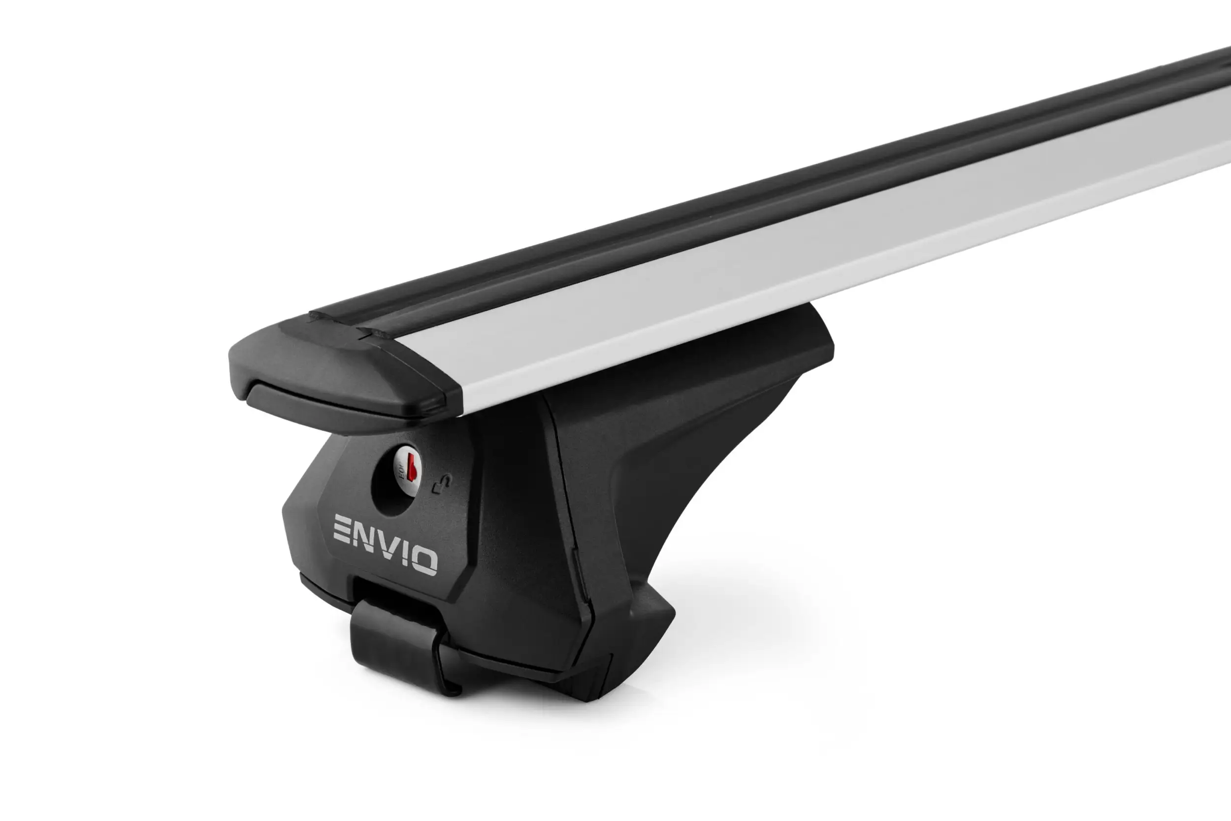 Univerzální hliníkové střešní nosiče ENVIO EN120WN – aerodynamický design, délka tyčí 120 cm, nosnost až 90 kg, uzamykatelné. Vhodné pro vozidla s integrovanými i vyvýšenými podélníky. Vybavené standardní T-drážkou, zakrytou dělenou gumou, která se nevyjímá! Stříbrné provedení.