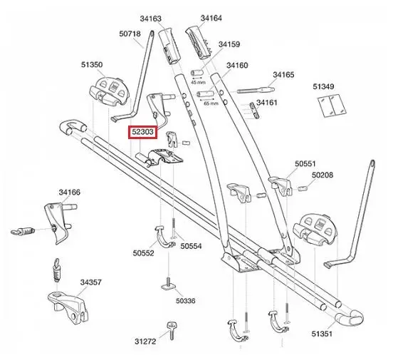 Odnímatelný držák uchycení Thule 52303 pro střešní nosič kol Thule FreeRide 532 a Thule FreeRide 530.