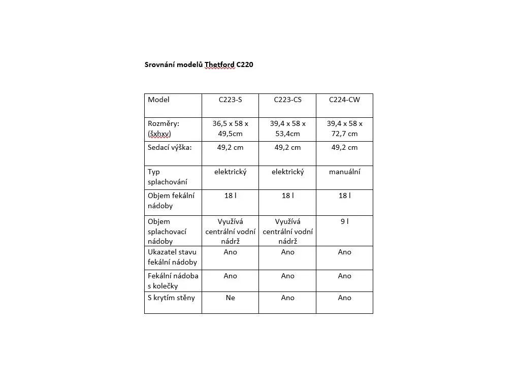 Hlavní výhody Thetford C224-CW