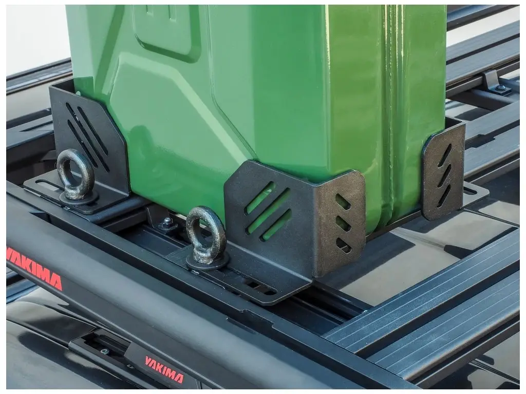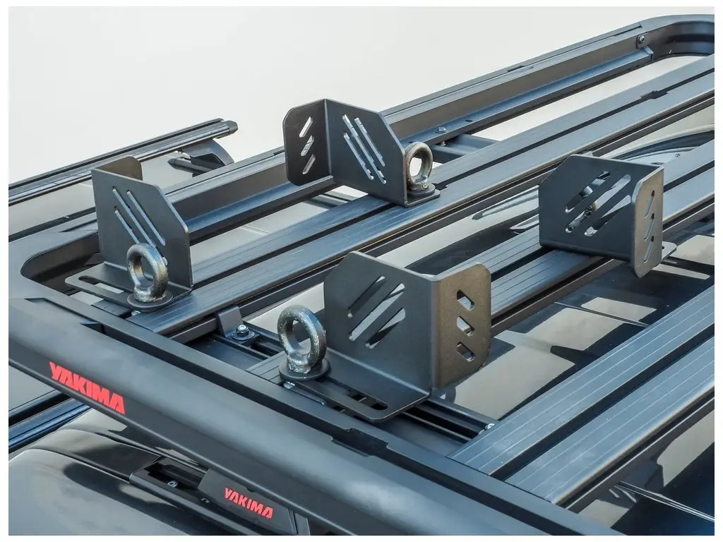 Rohové konzole pro zajištění výbavy hranatých tvarů na platformách LockNLoad™. Lehká instalace do T-drážky. Sada 4ks + ocelová oka.