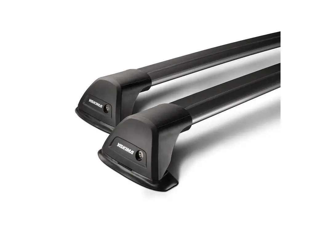 Nehlučné střešní nosiče s elegantním designem bez přesahu, s permanentně krytou T-drážkou a zámky. Délka tyčí 1x 110 cm, 1x 115 cm, černé provedení. Pro jejich instalaci je zapotřebí montážní kit Yakima (dle typu auta).
